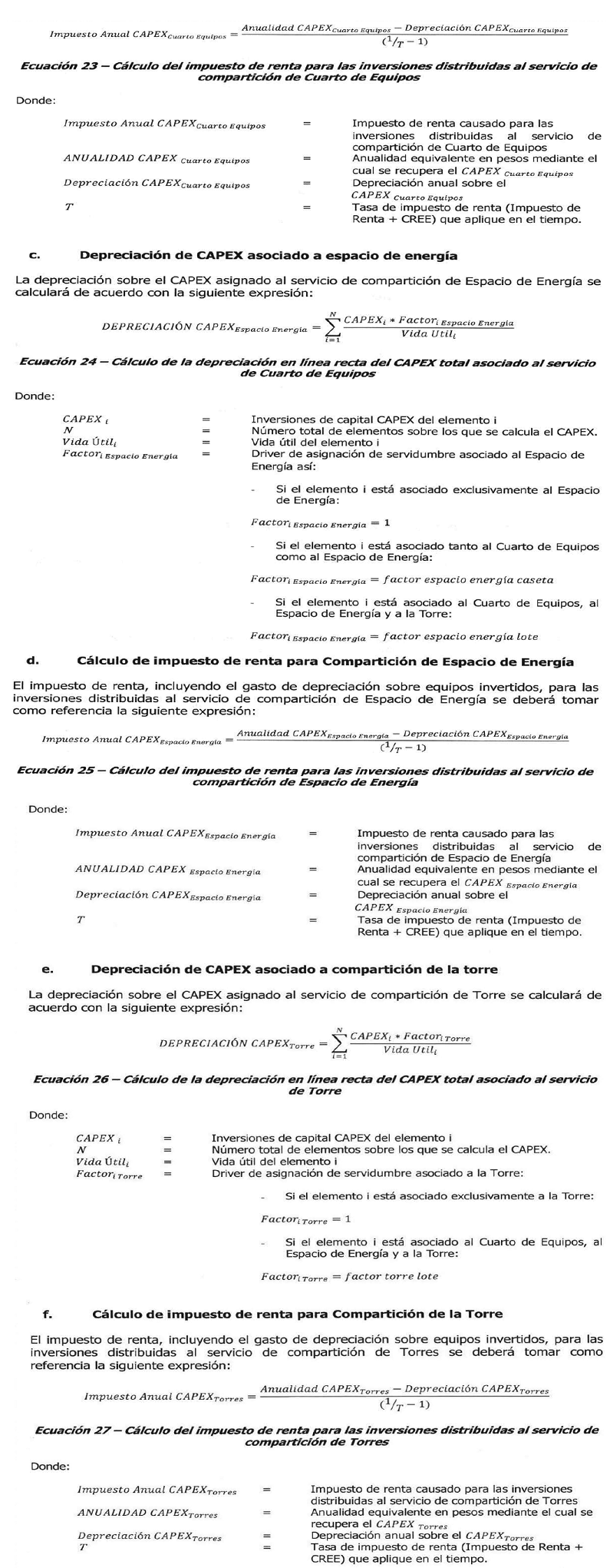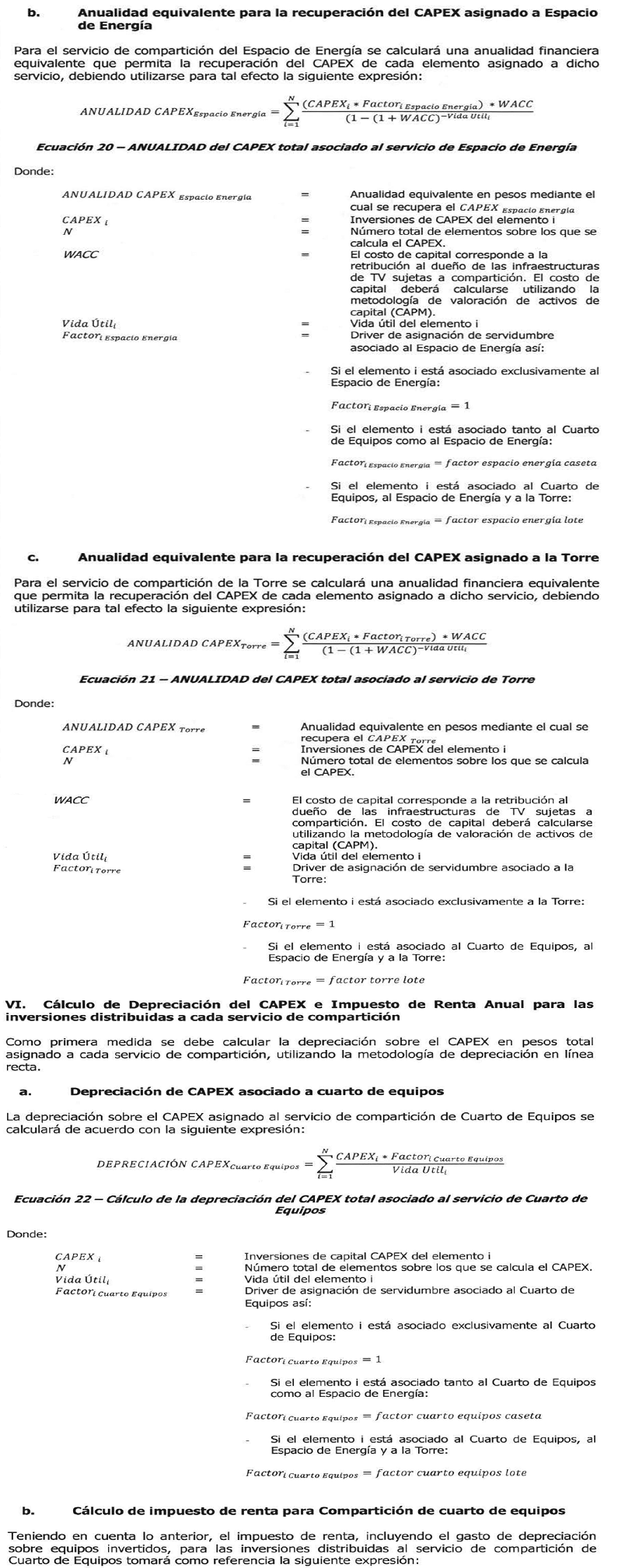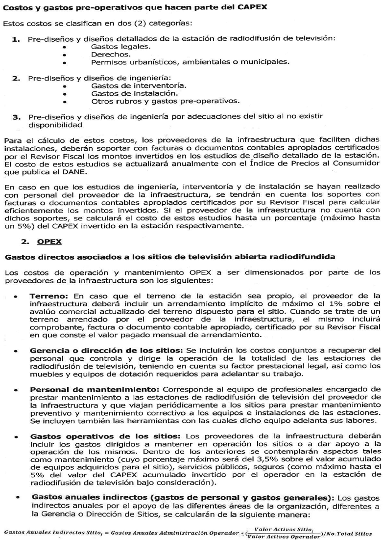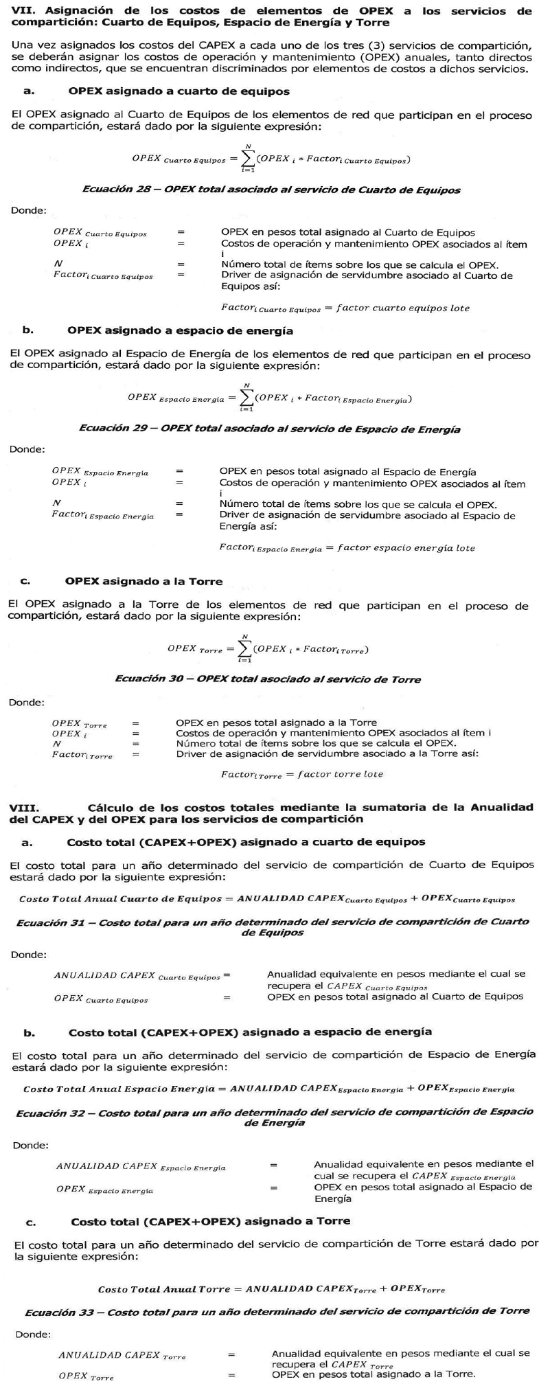 | OPEX Lote = | Expresado en pesos al mes, correspondiente a: i) máximo el 1% sobre el avalúo comercial actualizado del terreno (lote) dispuesto para el sitio, en el caso que el terreno (lote) sea propio, o ii) valor pagado mensual de arrendamiento, en el caso que el terreno (lote) no sea propio. |