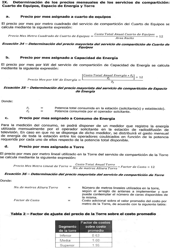2. La remuneración por concepto de las instalaciones esenciales requeridas para el acceso y uso, considerando lo dispuesto en el Anexo I de la presente resolución y por cada estación de radiodifusión de televisión, así: