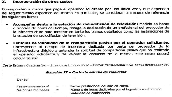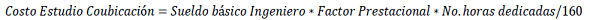 -- Estudios de viabilidad de la compartición pasiva por el operador solicitante: Corresponde al tiempo del servicio de ingeniería que haya dispuesto el proveedor de la infraestructura para entender la solicitud de compartición pasiva que ha realizado el operador solicitante y valorar técnicamente la viabilidad de la misma. Este costo deberá calcularse así: