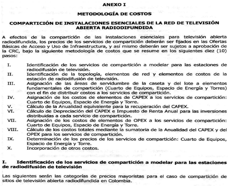 Que en atención a las solicitudes de los operadores de televisión abierta radiodifundida con cubrimiento nacional, la CRC desarrolló un documento complementario con la descripción de la metodología de costos planteada en la propuesta regulatoria previamente publicada en materia de condiciones generales para la provisión de infraestructura de las redes de televisión abierta radiodifundida, el cual fue puesto en consideración para comentarios de los interesados entre el 6 de junio y el 3 de julio de 2015;