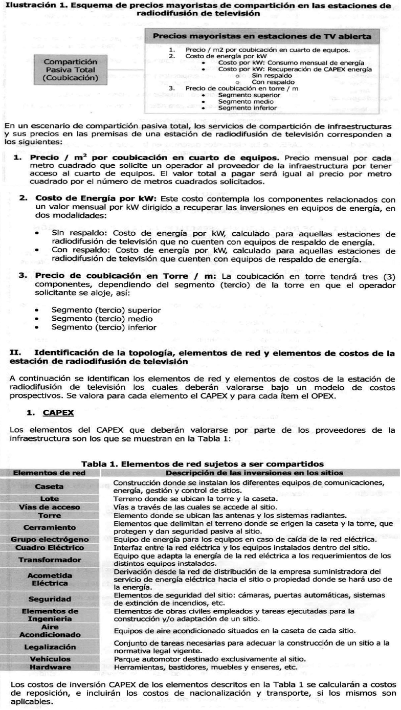 Que la Comisión Nacional de Televisión (CNTV), mediante Acuerdo número 005 de 2010, reglamentó las condiciones de acceso y uso de infraestructura de redes públicas y privadas de televisión radiodifundida, definiendo las instalaciones esenciales para la infraestructura de red de televisión abierta radiodifundida. En particular, se dispuso en la citada norma que “Los propietarios de las redes existentes presentaran (sic) una oferta por el acceso y uso de su red que esté orientada a costos eficientes y que estén suficientemente desagregados para que el operador que solicita el acceso no tenga que pagar por componentes o instalaciones de la red que no se requieran para el suministro del servicio. Esta oferta deberá ser publicada a más tardar dentro del mes (1) siguiente a la fecha de publicación del presente acuerdo”;