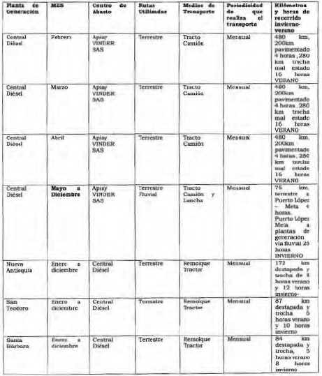 La información requerida por la CREG a la empresa fue la siguiente; documento con descripción de la logística de transporte y soportes correspondientes, copia del contrato de prestación del servicio de transporte y aclaraciones en relación con la solicitud presentada referente a si la misma incluía la revisión de los costos de transporte de combustible a las poblaciones de Nueva Antioquia, San Teodoro y Santa Bárbara.