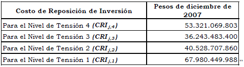 “Artículo 5o. Costos de reposición de la inversión. Los costos de reposición de la inversión del OR Empresa de Energía de Casanare S. A. E.S.P. para cada nivel de tensión, calculados en la forma establecida en la Resolución CREG 097 de 2008, son los siguientes: