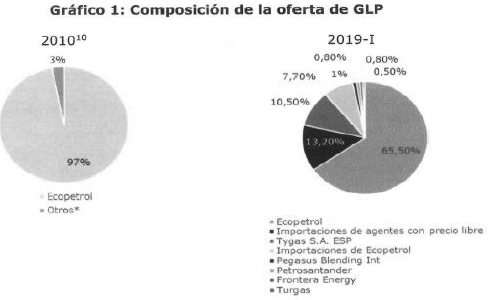 “De las Gráficas 2 y 3, así como de las Tablas 1 y 2, se tiene que en los próximos años la posición dominante que históricamente ha tenido Ecopetrol como productor de GLP nacional se mantiene. De considerarse las fuentes que hoy en día comercializa, incluyendo la oferta adicional que se declara con la entrada de Cupiagua, la participación de Ecopetrol se mantendría en niveles cercanos al 90% de la producción potencial y alrededor del 85% de la PTDV”.