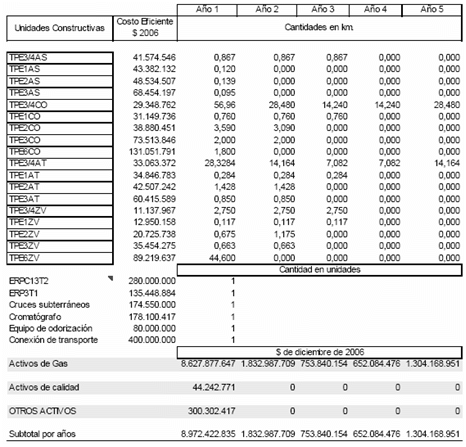 Que la solicitud tarifaria presentada por Jimelgás S. A., ESP, incluye las proyecciones de demanda, las proyecciones de gastos de AOM de distribución y el Programa de Nuevas Inversiones, clasificadas según el listado de unidades constructivas establecido en el Anexo número 1 de la Resolución CREG 011 de 2003;