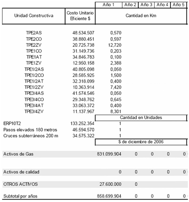 Que la solicitud tarifaria presentada por Gases del Llano S. A., ESP, incluye las proyecciones de demanda, las proyecciones de gastos de AOM de distribución y el Programa de Nuevas Inversiones, clasificadas según el listado de unidades constructivas establecido en el Anexo número 1 de la Resolución CREG 011 de 2003;