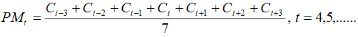 2.1. Calcular promedios móviles centrados de longitud 7 (una semana):