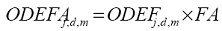 | Suma de ODEFA de todos los generadores j del día d en el mes m. |