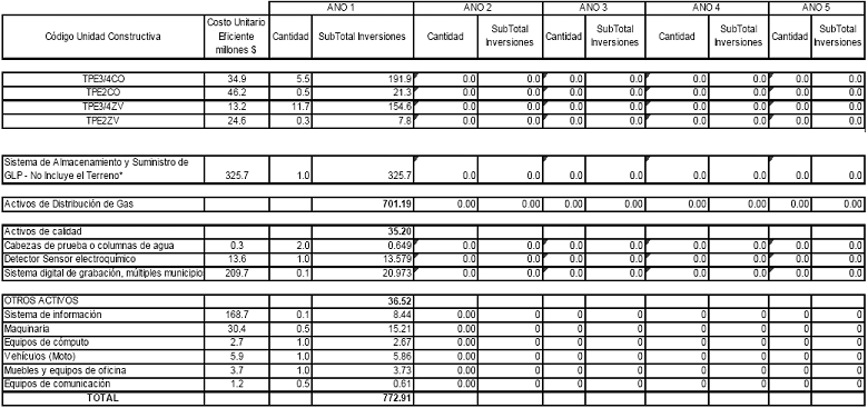 La Empresa, mediante la comunicación en cita reportó a la CREG las proyecciones de demanda, las proyecciones de gastos de AOM de distribución y el programa de nuevas inversiones, clasificadas según el listado de unidades constructivas establecido en el Anexo No. 1 de la Resolución CREG 011 de 2003.