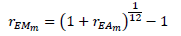rEAm: Tasa efectiva anual para calcular la tasa mensual a aplicar en el mes m.