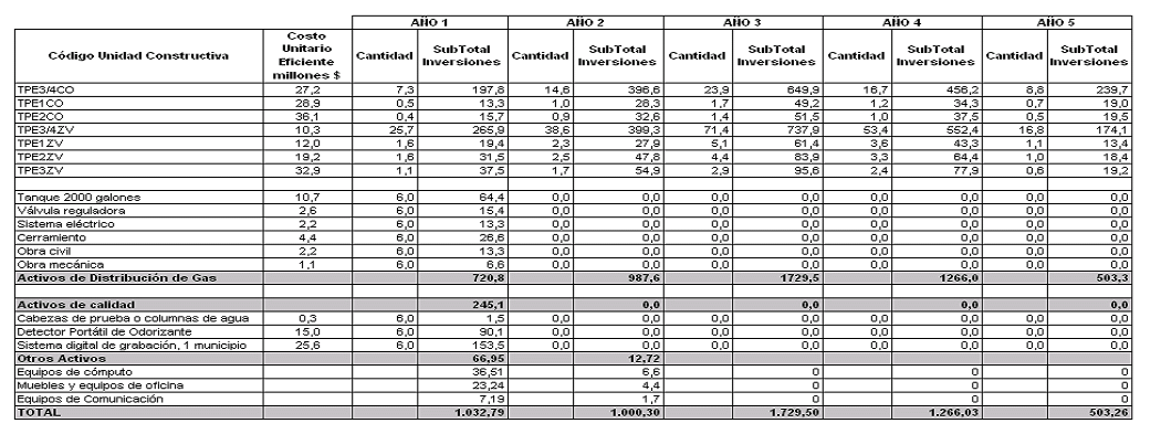 Que la empresa ECOSEP S.A. E.S.P., mediante comunicación con radicado CREG E-2003-0010645 del 21 de noviembre, reportó a la CREG las proyecciones de demanda, las proyecciones de gastos de AOM de distribución y el programa de nuevas inversiones, clasificadas según el listado de unidades constructivas establecido en el Anexo No. 1 de la Resolución CREG 011 de 2003;