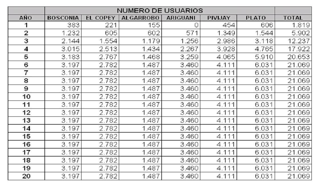 PROYECCIONES DE USUARIOS Y DEMANDA POR MUNICIPIO.