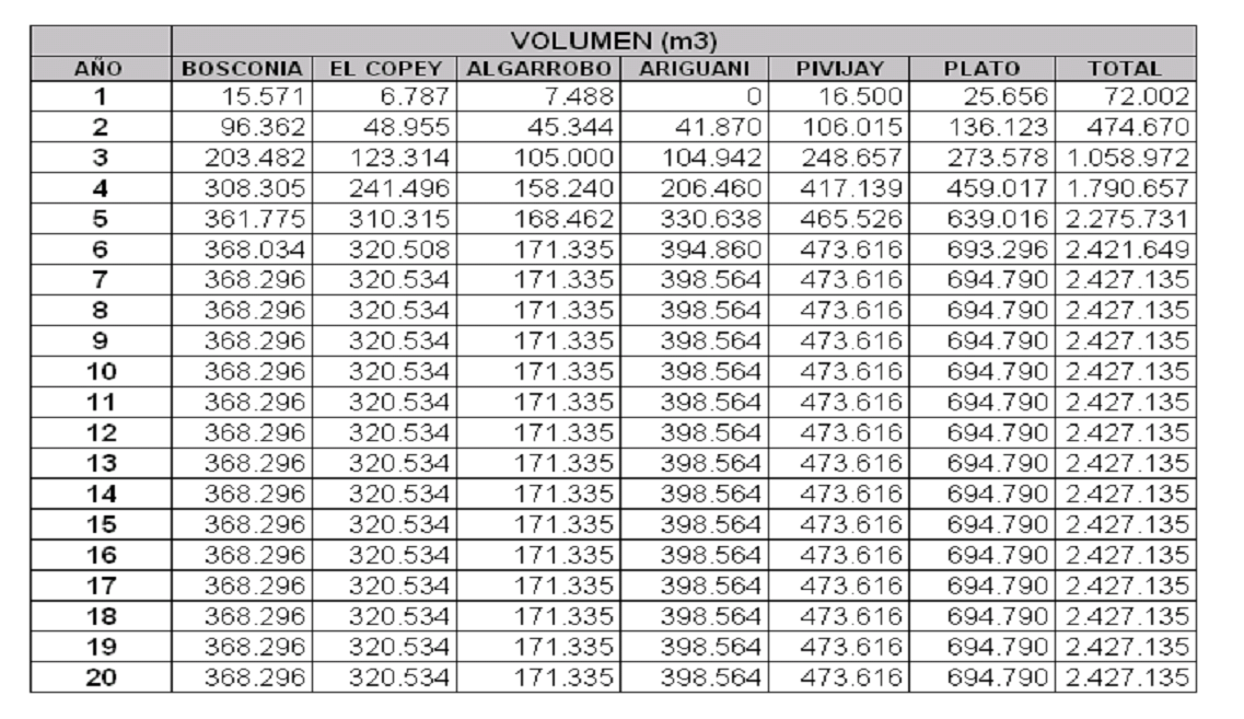ARTÍCULO 3o. DEMANDAS ESPERADAS DE VOLUMEN. Para el cálculo tarifario se utilizó la Demanda de Volumen para el horizonte de proyección presentada en el Anexo 2 de esta Resolución.