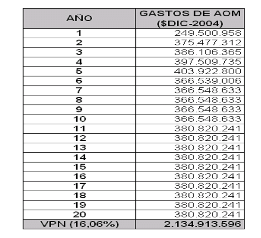 | Valor Presente de los gastos de AOM, con nivel de eficiencia | $2,134,913,596 |
