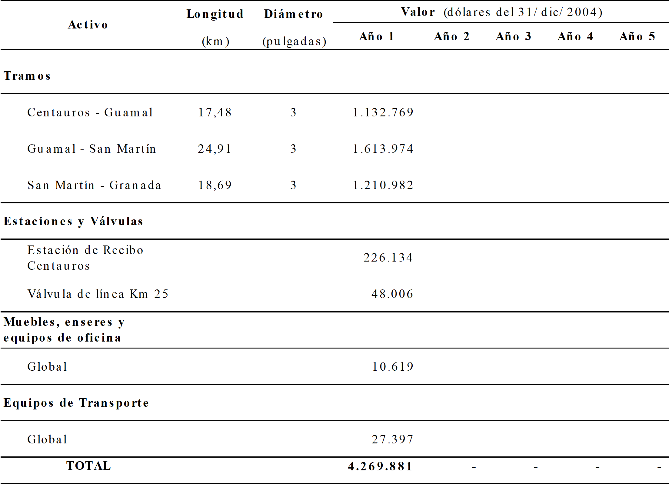 ARTÍCULO 3o. INVERSIÓN BASE. La inversión base del Gasoducto Regional del Ariari sólo comprende el Programa de Nuevas Inversiones como se indica a continuación: