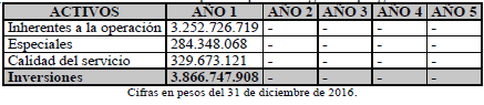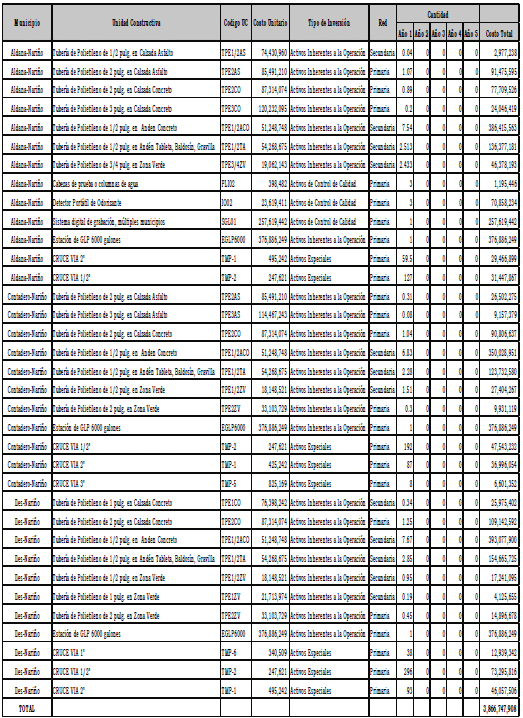 Teniendo en cuenta que la solicitud comprende la inclusión de municipios nuevos o que corresponde a un mercado nuevo la empresa reporta el siguiente programa de inversiones.