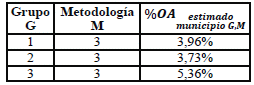 El valor del porcentaje resultante del promedio simple de los municipios que conforman el grupo y metodología es el que se le asigna al grupo y metodología respectivo y el que será como máximo a reconocer para cada uno de los municipios que pertenezcan a él incluyendo los que formaban parte de las Áreas de Servicio Exclusivo.