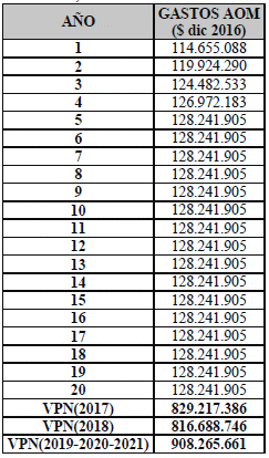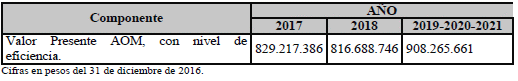 de 100%, el cual se aplica a la proyección de AOM ajustada. En el Anexo 3 se presentan los gastos ajustados de AOM para cada año del Horizonte de Proyección.