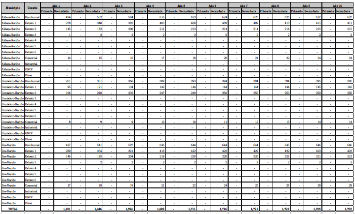 3.2. Valoración de la Inversión Base Aplicando la metodología contenida en la Resolución CREG 202 de 2013 y sus modificaciones y adiciones, se calcularon conforme a las formulas establecidas en los numerales 9.1.1.3 y 9.2.1.3 del artículo 9o para la componente que remunera la inversión base, aplicable a usuarios de uso residencial y a usuarios diferentes a los de uso residencial y se obtuvieron las siguientes variables principales:
