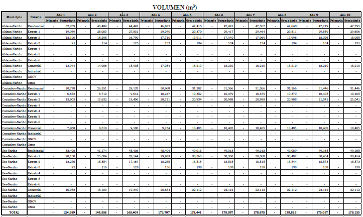 ARTÍCULO 2o. DEMANDAS DE VOLUMEN. Para el cálculo tarifario se utilizó la Demanda de Volumen presentada en el Anexo 2 de esta resolución.