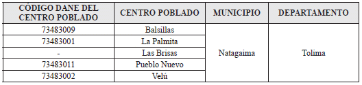 - La no inclusión de los centros poblados en el plan de expansión de la empresa que presta el servicio en el municipio de Natagaima, Tolima.