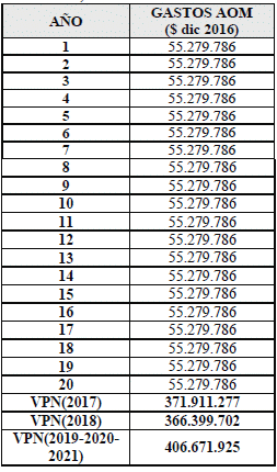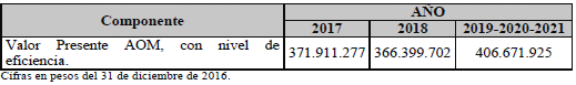 de 98,26%, el cual se aplica a la proyección de AOM ajustada. En el Anexo 3 se presentan los gastos ajustados de AOM para cada año del Horizonte de Proyección.