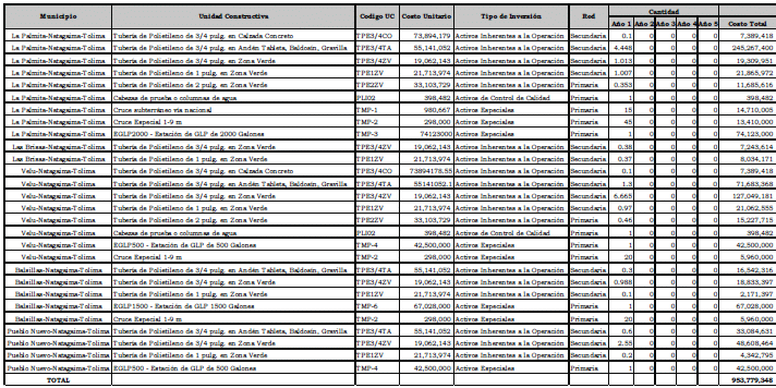 En la mencionada comunicación se allegaron los datos de demanda, gastos de Administración, Operación y Mantenimiento (AOM) y las inversiones clasificadas según el listado de unidades constructivas establecido en el Anexo número 8 de la Resolución CREG 202 de 2013.