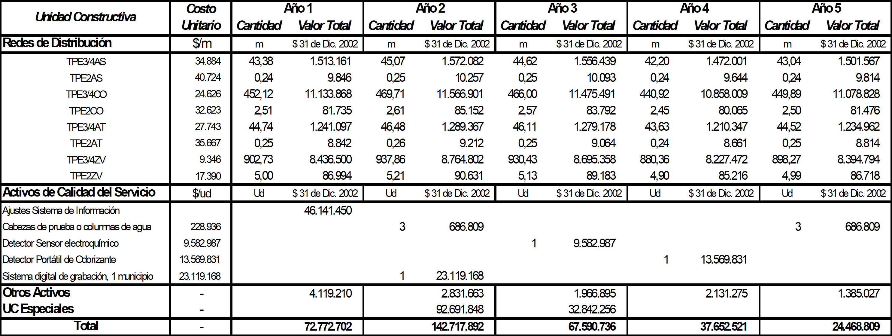 Que GASES DE BARRANCABERMEJA S.A. E.S.P., mediante comunicación con radicado E2003-005536 del 30 de mayo de 2003, reportó a la CREG las proyecciones de demanda, las proyecciones de gastos de AOM de distribución y el programa de nuevas inversiones, clasificadas según el listado de unidades constructivas establecido en el Anexo No. 1 de la Resolución CREG 011 de 2003;