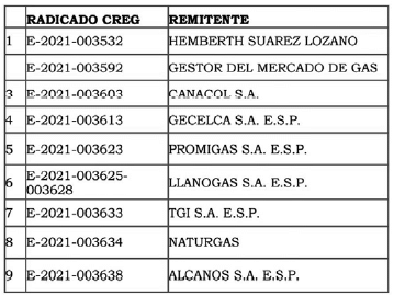 En el p roceso de consulta las siguientes empresas enviaron comentarios: