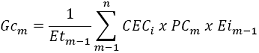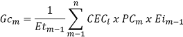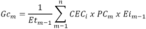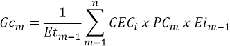 | Gcm: | Precio regulado compuesto por los costos de los combustibles de origen fósil, o de las mezclas obligatorias de estos con biocombustibles por disposición gubernamental, puestos en el sitio de operación de las plantas del parque de generación, para el mes m. Este valor, expresado en pesos por kilovatio hora ($/kWh), se calculará así: |