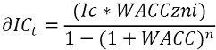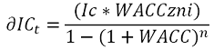 | Ict: | Ingreso regulado para el año t del periodo de vigencia de la obligación de prestación del servicio, que remunera al prestador del servicio las inversiones requeridas para la actividad de comercialización. Este ingreso, expresado en pesos ($) del mes anterior al de la realización del proceso competitivo, corresponderá a las inversiones en comercialización realizadas por el adjudicatario para atender la demanda máxima proyectada. |