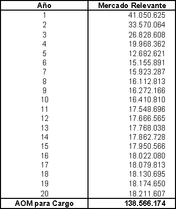 Aplicando este resultado al valor presente de los gastos de AOM propuestos para el Horizonte de Proyección, se obtiene el siguiente valor para incorporar al cálculo del cargo que remunera los gastos de AOM. En el Anexo 3 se presentan los gastos de AOM para el Horizonte de Proyección.