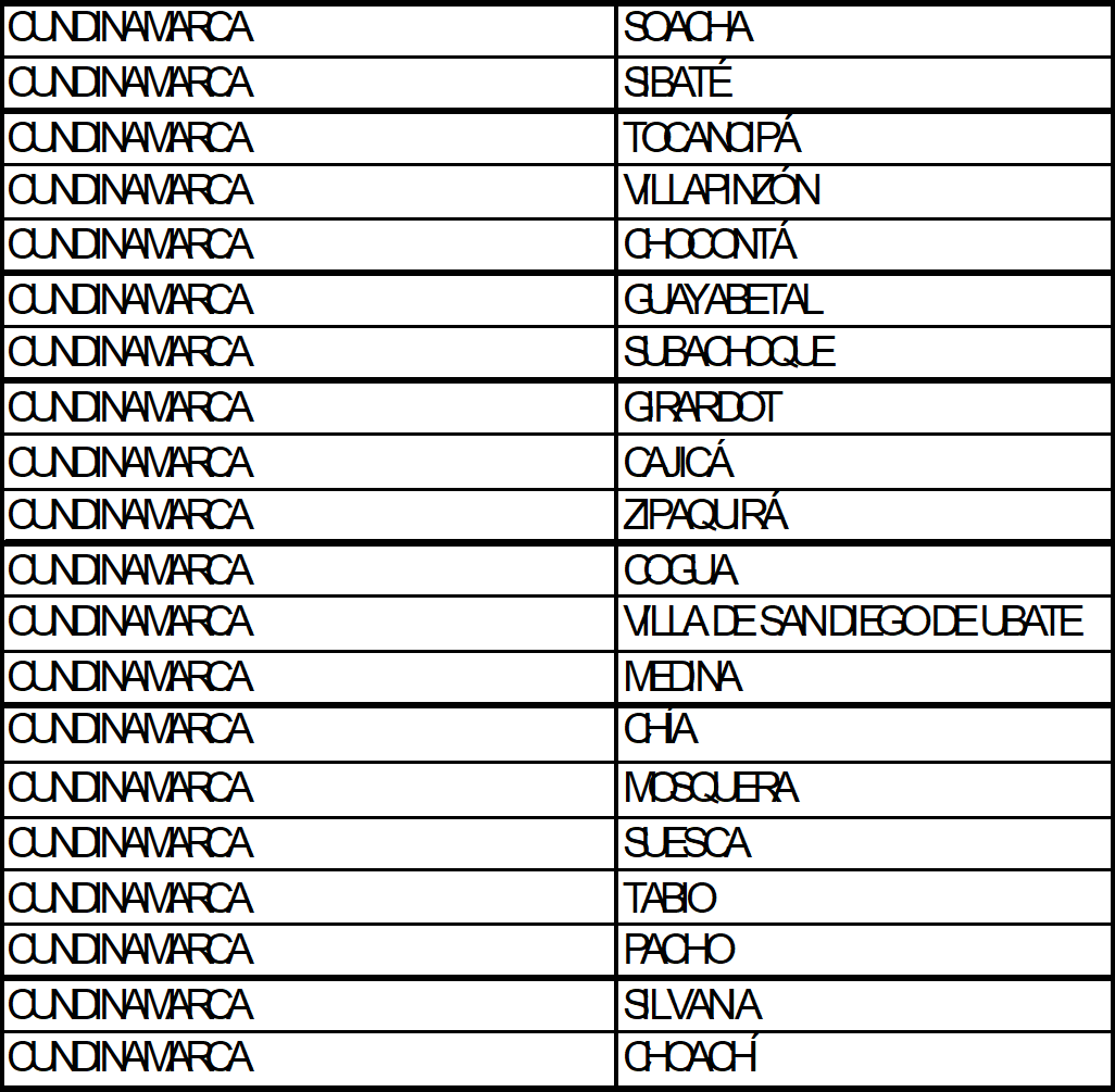 La metodología para la estimación de las metas individuales de reposición contenidas en la Resolución CREG 009 de 2006, tuvo en cuenta entre otros parámetros el reporte de ventas de GLP que realizaron las empresas distribuidoras al SUI en cilindros de las diferentes denominaciones en el segundo semestre del año 2005. Por esta razón no se tiene en cuenta las ventas atadas a las plantas de llenado que poseen las empresas sino que se toman las ventas en cilindros reportadas en lo diferentes municipios, de esta manera no se tuvo en cuenta a la empresa Rayogas para la reposición intensiva en la ciudad de Bogotá por cuanto no reportó ventas en cilindros para la ciudad de Bogotá. A continuación se observan los municipios de Cundinamarca en donde la empresa reportó sus ventas durante el año 2005.