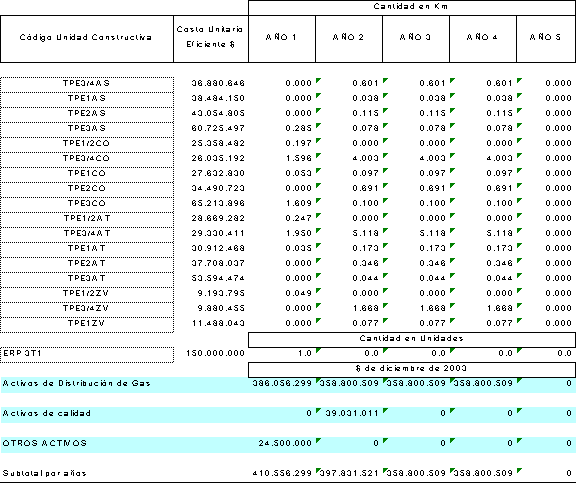 Que la solicitud tarifaria presentada por Nacional de Servicios Públicos Domiciliarios S. A. ESP. Incluye las proyecciones de demanda, las proyecciones de gastos de AOM de distribución y el Programa de Nuevas Inversiones, clasificadas según el listado de unidades constructivas establecido en el Anexo número 1 de la Resolución CREG 011 de 2003;