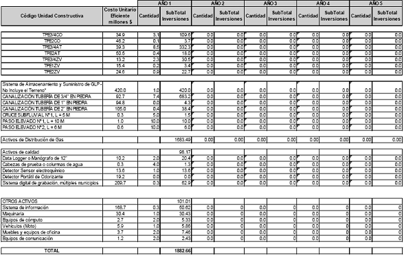 La Empresa, mediante la comunicación en cita reportó a la CREG las proyecciones de demanda, las proyecciones de gastos de AOM de distribución y el programa de nuevas inversiones, clasificadas según el listado de unidades constructivas establecido en el Anexo número 1 de la Resolución CREG 011 de 2003.