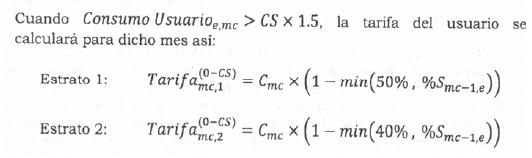 PARÁGRAFO 1. Cuando en un mes posterior, el consumo total de un usuario ya no exceda el cincuenta por ciento (50%) del consumo básico o de subsistencia, los límites máximos de subsidio volverán a los porcentajes definidos en el artículo 4 y su tarifa se calculará para ese mes según los artículos 7 y 8 de la presente resolución. En este caso, la tarifa del mes anterior, requerida para la determinación de la tarifa del mes de cálculo, corresponderá a la aplicada en el mercado de comercialización al cual pertenece el usuario.