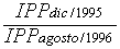 Los valores de i se calculan con base en las tarifas aprobadas y vigentes en agosto de 1996 (expresadas en pesos de diciembre de 1995), deflactadas para tal fin con los IPP aplicables para agosto de 1996 y diciembre de 1995; esto es: