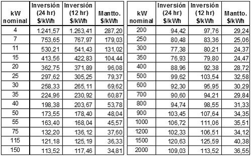 | Nivel de Tensión | Componente de Inversión | Componente de AOM | Total |