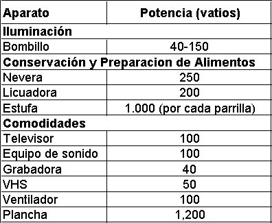 Parágrafo: Aforos de carga: para efectos de realizar aforos de carga a usuarios que transitoriamente no dispongan de medidor individual se utilizarán los siguientes valores, teniendo en cuenta factores de utilización: