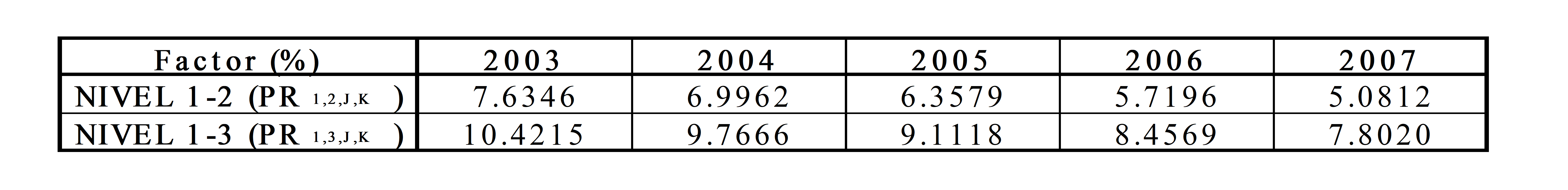 b) Factores para referir las medidas en el nivel de tensión 1 a los Niveles de Tensión 2 y 3: