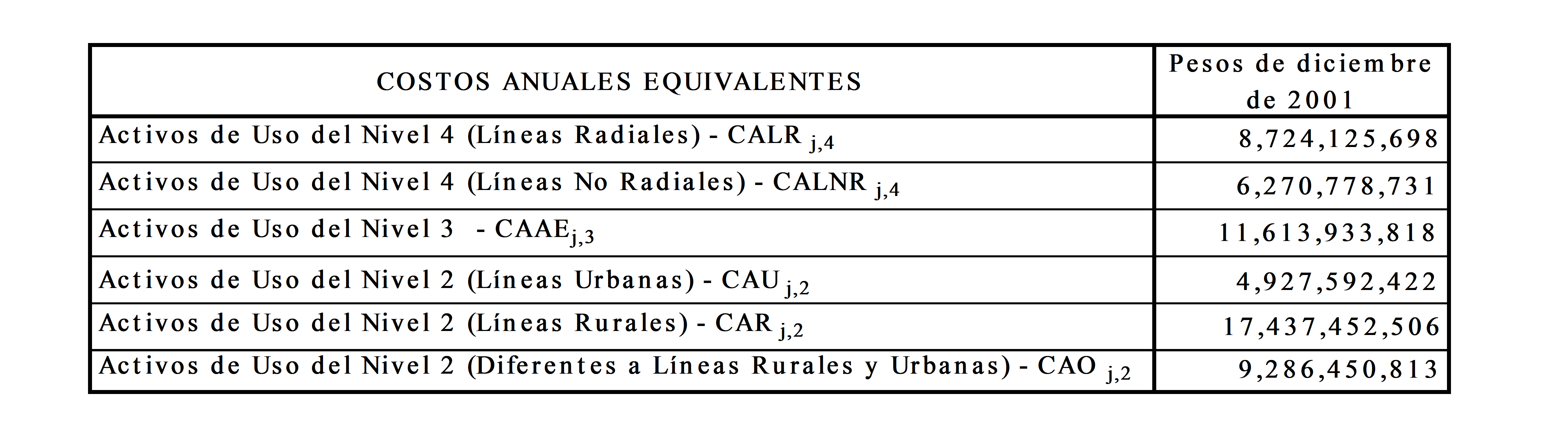 b) Costo Anual para remunerar los activos de los Niveles de Tensión 4, 3 y 2, aplicando los criterios de eficiencia de que trata el Anexo No 8 de la Resolución CREG 082 de 2002 y los aprobados mediante Resolución CREG 030 de 2003: