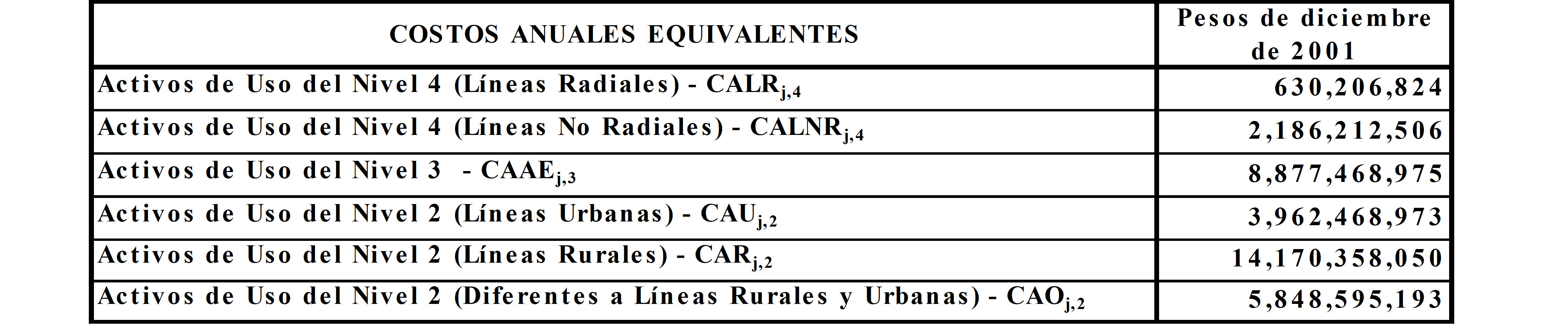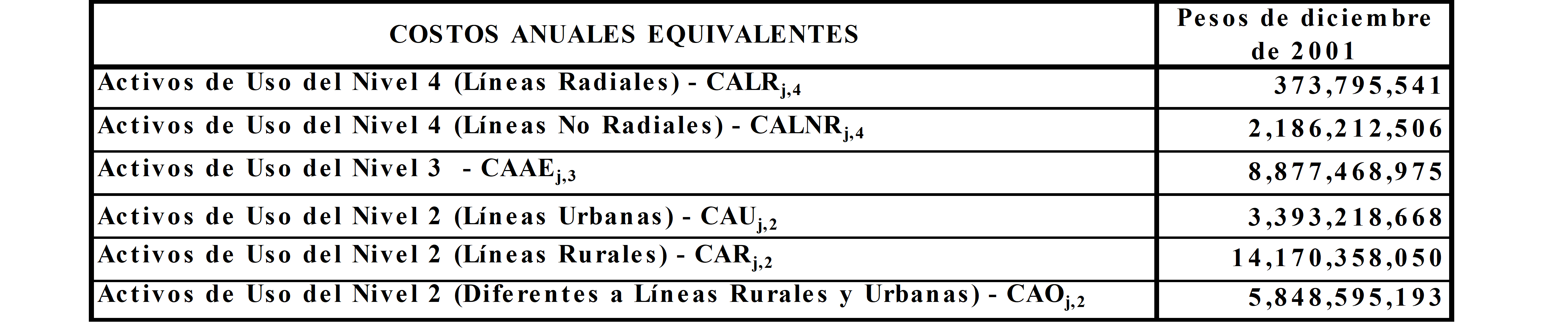 ARTÍCULO 1o. COSTO ANUAL POR EL USO DE LOS ACTIVOS DEL NIVEL DE TENSIÓN 4. El Costo Anual por el uso de los activos del Nivel de Tensión 4 operados por la Empresa de Energía de Cundinamarca S. A. E.S.P. será el siguiente: