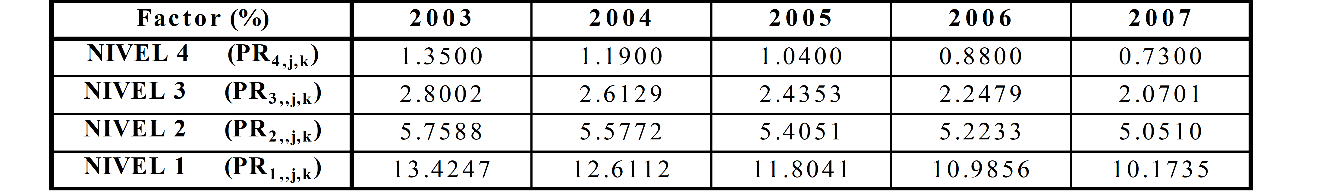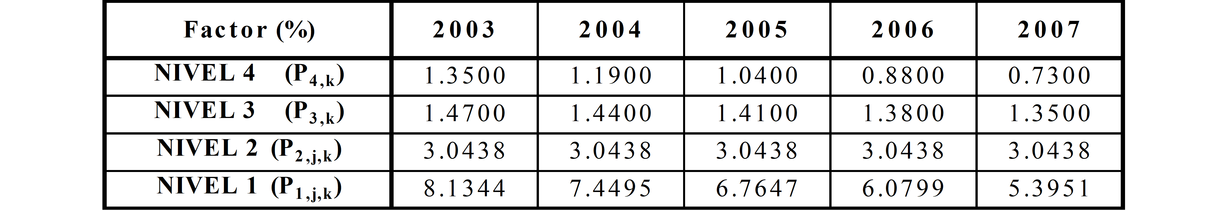 PARÁGRAFO. Los factores de que trata el presente Artículo se aplicarán de acuerdo con la siguiente expresión: