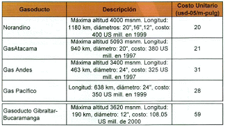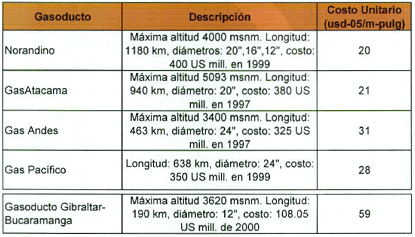 4.2. Parámetros Utilizados por la COMISIÓN DE REGULACIÓN DE ENERGÍA Y GAS para la Determinación de la Inversión en el Gasoducto.