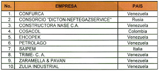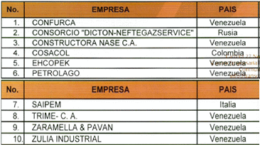 4.14. En el proceso de contratación con las firmas venezolanas, se esperaba la participación de las siguientes empresas: