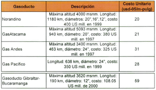 Dichas cifras, según lo revela el documento CREG, corresponden a los gasoductos Norandino, GasAtacama, Gas Andes y Gas Pacífico, denominados, gasoductos Andinos: