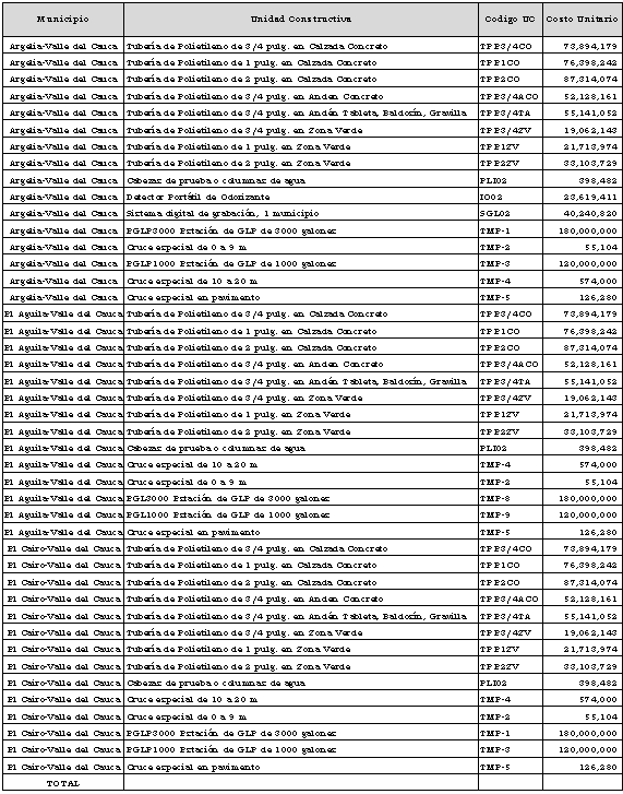 | Componente de inversión pagada con recursos de la empresa OP&S CONSTRUCCIONES S.A. E.S.P. | $/m3 | 1.860,22 | 1.886,99 | 1.707,65 |