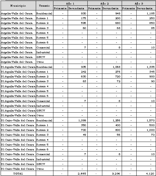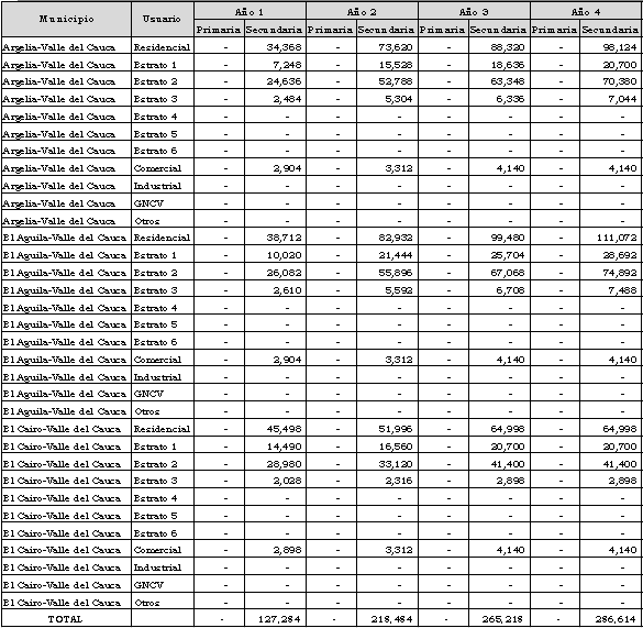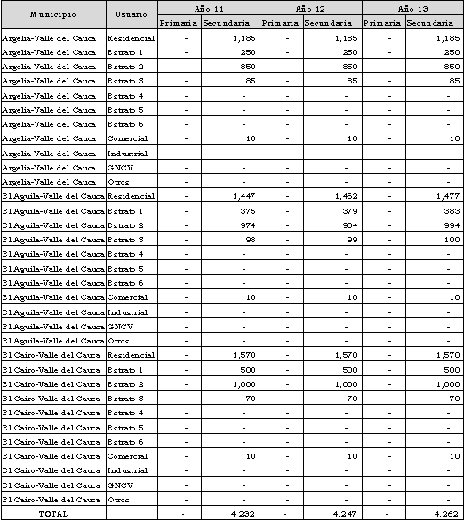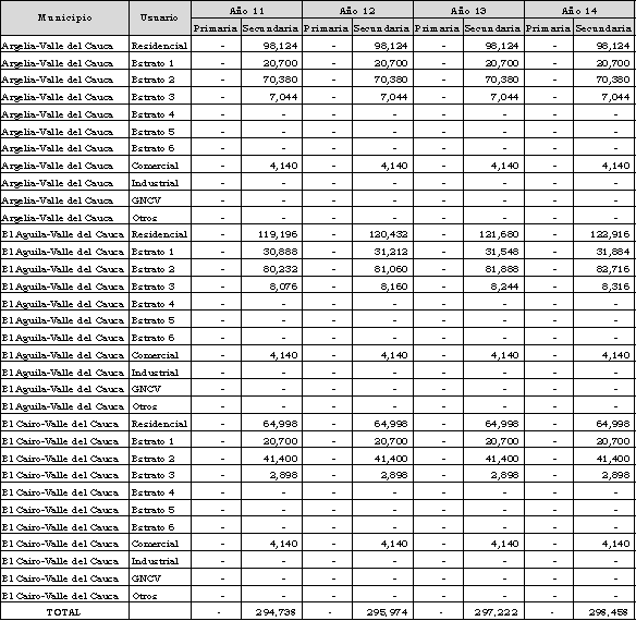 Dado que el sistema de distribución presentado por la Empresa OP&S Construcciones S. A. E.S.P. para el mercado relevante conformado por los municipios de Argelia, El Águila y El Cairo en el departamento del Valle del Cauca cuenta con red primaria y secundaria y todos sus usuarios están conectados a la red secundaria, se podrá determinar para este mercado relevante un solo cargo de distribución que será aplicable a los usuarios de uso residencial y usuarios diferentes al uso residencial.