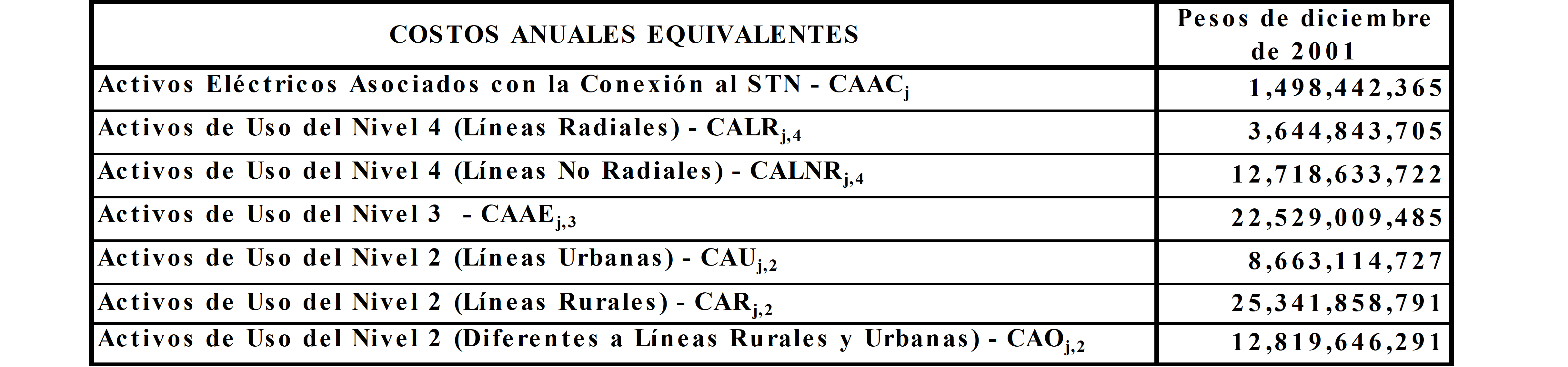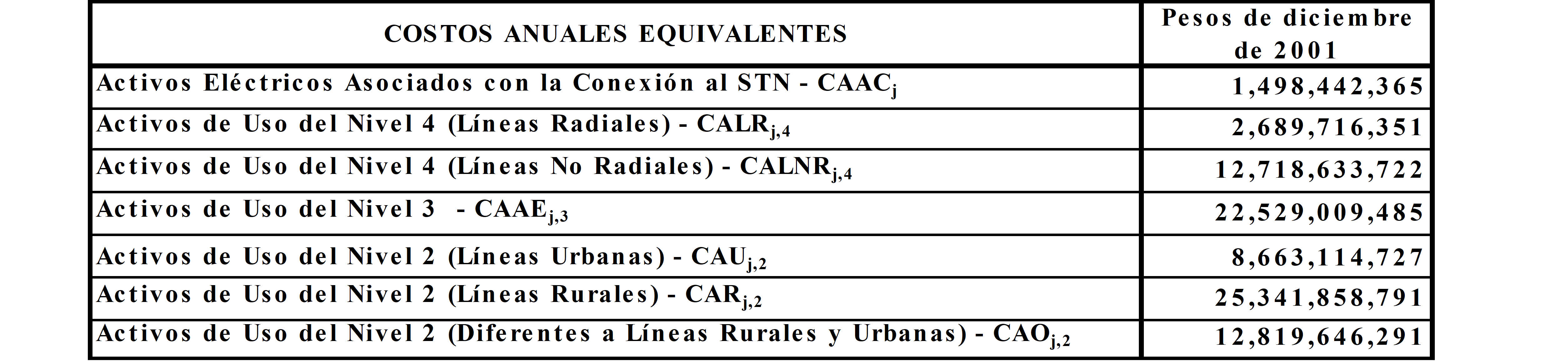 a) Costo anual para remunerar los activos de conexión al STN y los Niveles de Tensión 4, 3 y 2, sin aplicar los criterios de eficiencia de que trata el Anexo No 8 de la Resolución CREG 082 de 2002:
