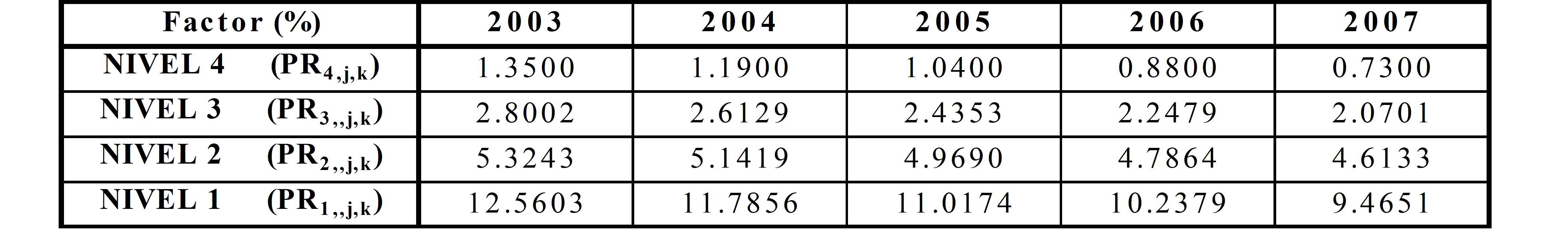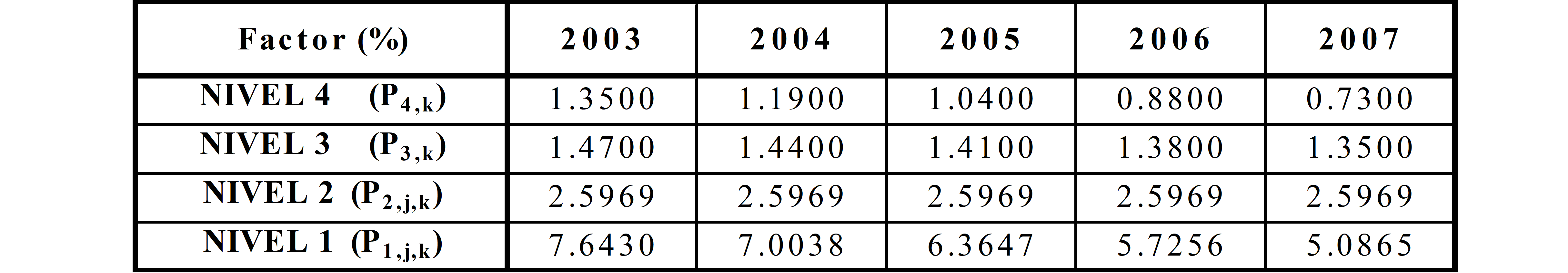PARÁGRAFO. Los factores de que trata el presente Artículo se aplicarán de acuerdo con la siguiente expresión: